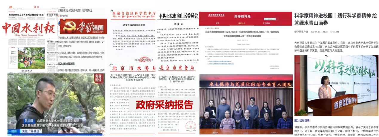 教学模式规范了本科人才课程体系设置,为全国水土保持与荒漠化防治专业本科人才培养提供了模板,通过虚拟教研室与资源共享机制,在全国辐射推广。近五年开展全国高校教师教学技能培训400余人,组织全国人才和论坛培训5000余人;国家级一流课程与MOOC选课总人数达5万余人次,优秀教材年均发行4000余册。组织学生参加青藏科考、海河流域“23.7”特大洪水灾害调查等重大社会实践活动,多项咨询报告获省级领导批示或被地方政府采纳。改革经验被中央电视台、人民日报、学习强国等主流媒体报道40余次,学生参与“生态文明讲师团”获国家最高领导人勉励,荒漠化防治成效得到时任副总理高度肯定。