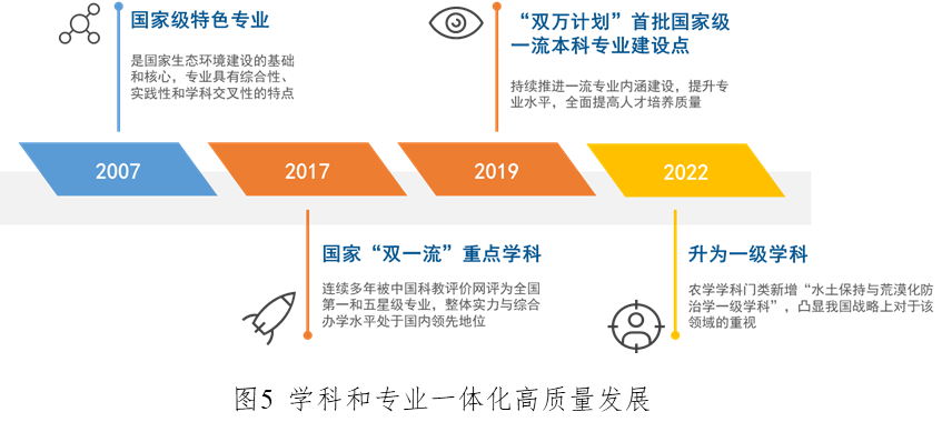 入选一流专业建设点:在成果支撑下,水保专业于2007年被认定为国家特色专业,2017年入选国家“双一流”重点学科,2019年被评为“双万计划”首批国家级一流本科专业建设点。