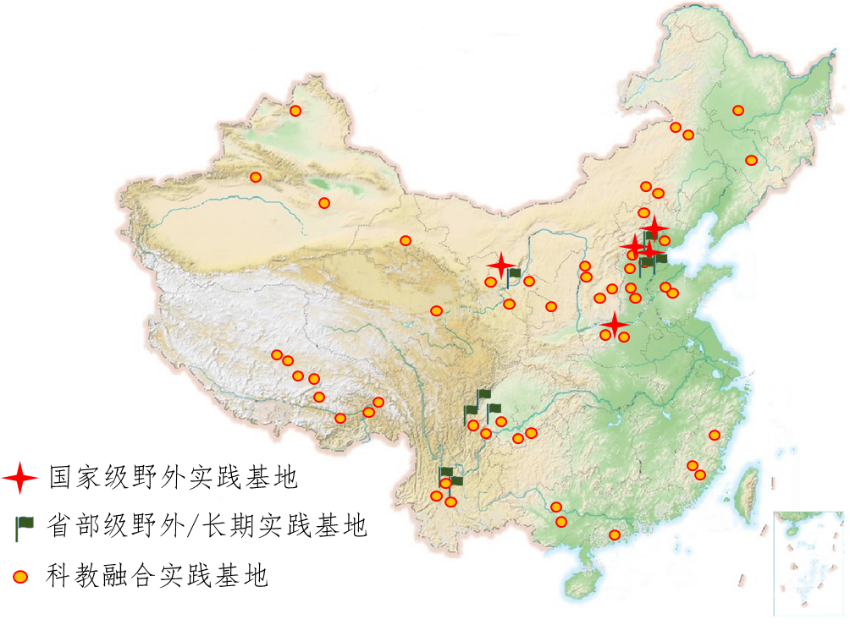 瞄准智慧教育发展趋势,构建了全方位的智慧教学支撑体系。自主研发的AI赋能力学行为仿真平台,构建了高保真实验场景,可模拟坡面流形成、土壤侵蚀演变等复杂过程。平台支持参数化建模和可视化分析,实现了理论与实践的高度融合,已获得软件著作权3项。在教学方法创新方面,将项目式学习与人工智能技术深度结合,教师根据真实工程问题设计教学项目,学生通过模拟分析和方案优化,最后通过实验验证和实地应用完成学习闭环。平台建设成效显著,建成“把论文写在大地上-关君蔚院士科学家精神基地”和覆盖全国主要生态脆弱区的实习实践基地(如图7),累计服务学生1000余人次。学生通过平台开展的创新项目获省部级以上奖项10余项,发表相关论文20余篇,构建了“虚拟-实境-线上-共享”四维协同的教学新生态,获得了良好的应用效果和社会评价。