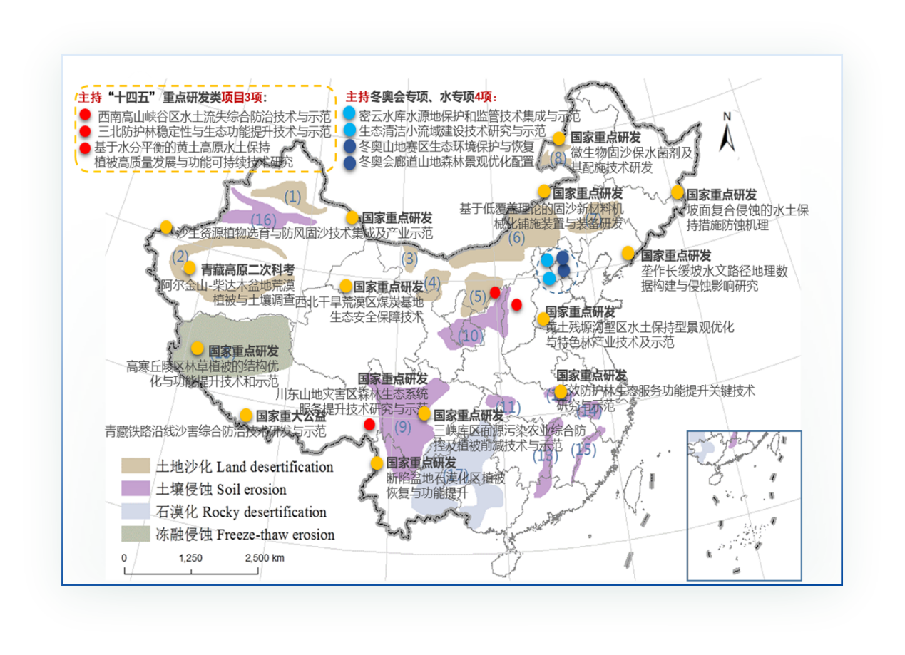 图1 十四五期间北京林业大学水土保持学院承担的部分生态建设项目示意图