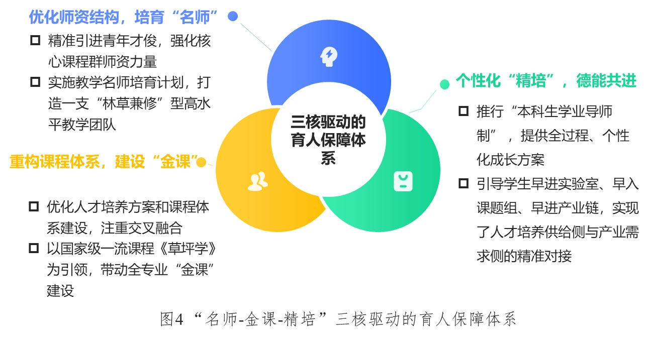 2、打造“名师-金课-精培”三核驱动的育人保障体系,攻克教学资源滞后与创新驱动不足瓶颈(见图4)