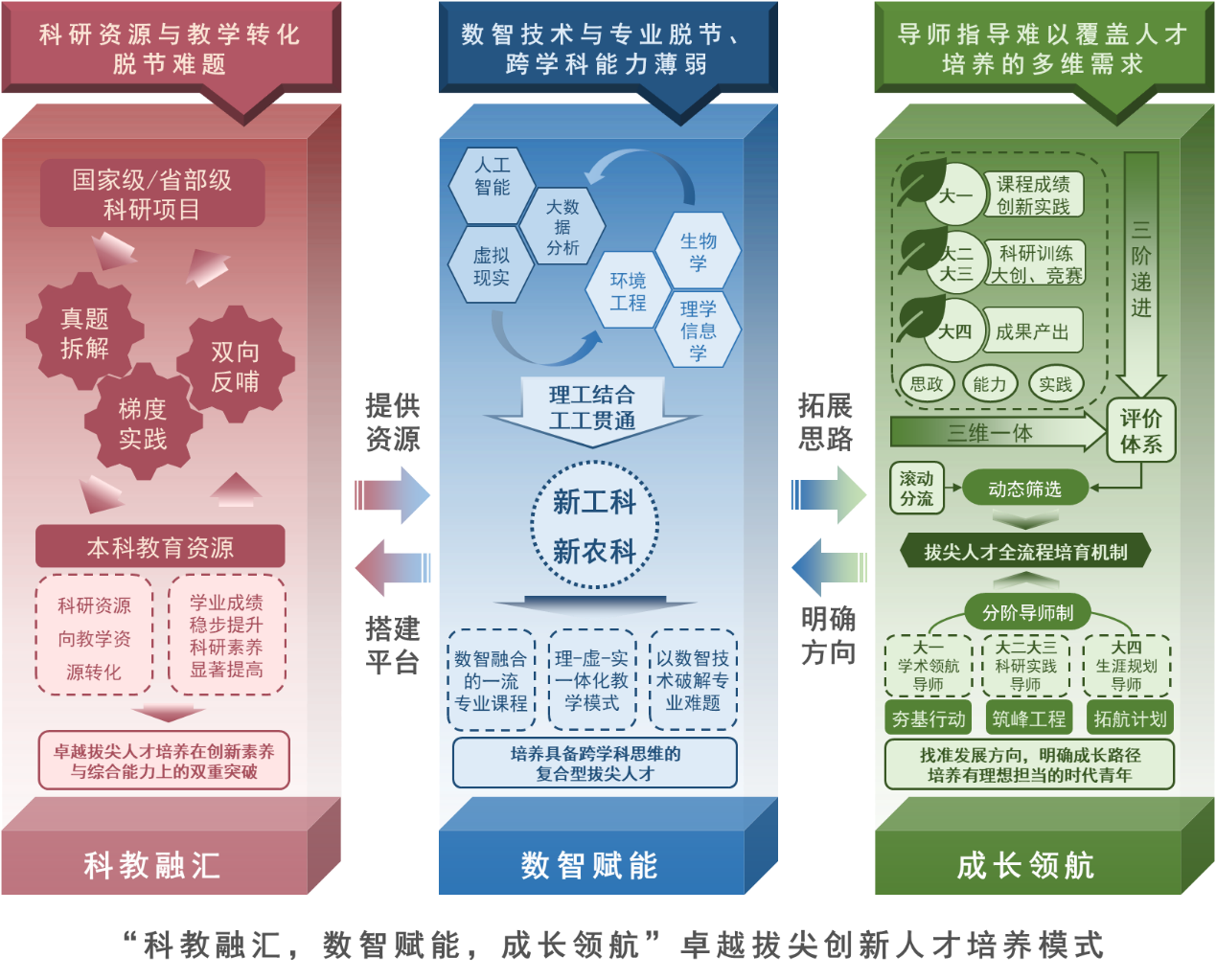 图1 “科教融汇、数智赋能、成长领航”卓越拔尖创新人才培养模式