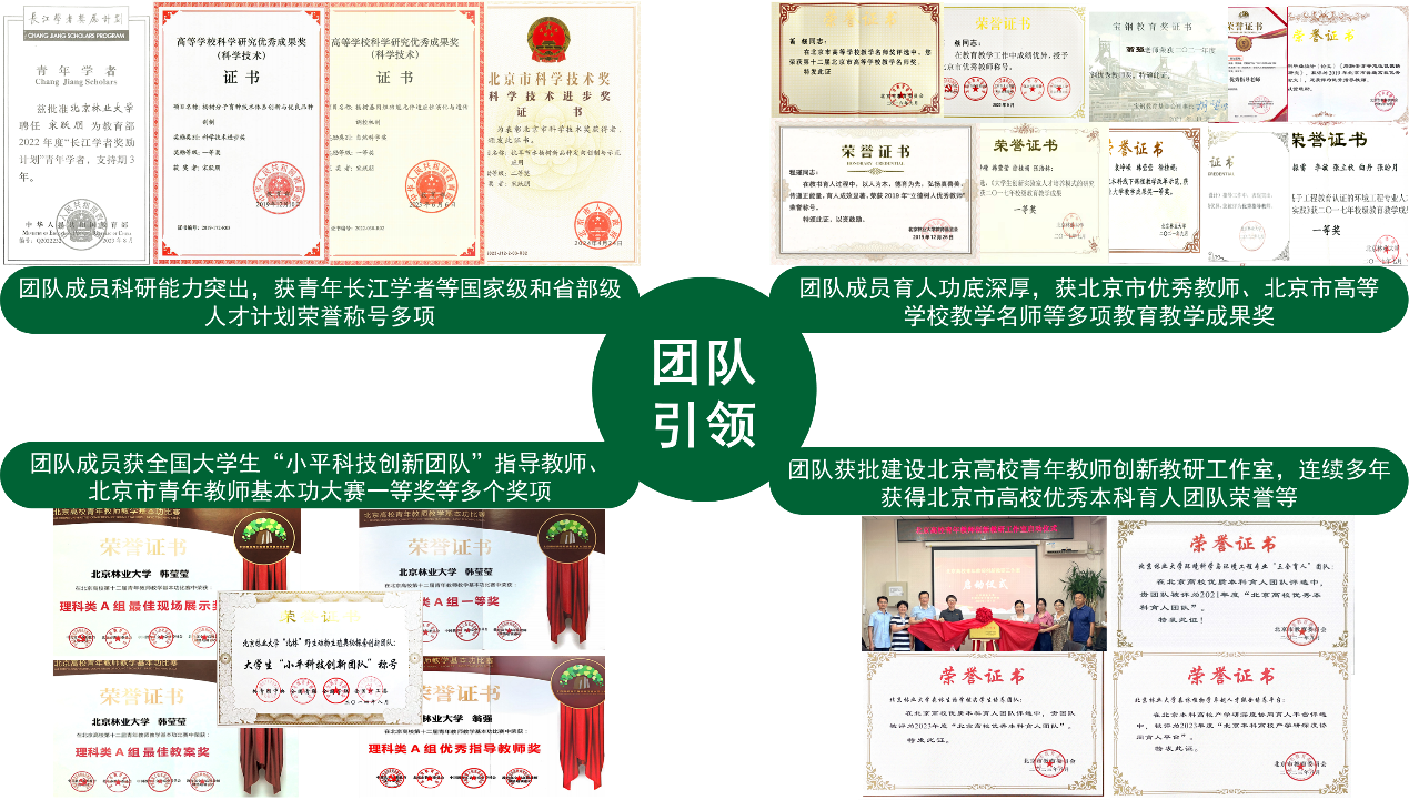 教学改革实践过程中,通过“以赛强师、科教共举”不断强化师资建设,连续多年获得北京市高校优质本科育人团队荣誉,获批建设北京高校青年教师创新教研工作室。团队教师获北京市优秀教师、北京市高等学校教学名师奖、宝钢优秀教师奖等教育教学奖项,入选教育部“长江学者奖励计划”青年学者计划、“国家林业和草原局青年拔尖人才”、获教育部自然科学一等奖、教育部科技进步一等奖等科研成果奖等。团队每年邀请如美国国家科学院院士Richard Dixon等国外知名学者为拔尖学生授课,联合打磨拔尖学生的双语课程,为培育具有国际视野的拔尖人才提供有效支撑。在北京市教学名师“传、帮、带”引领下,获北京高校青年教师教学基本功比赛一等奖、最佳教案奖、最佳现场展示奖,北京高校“优秀本科教案”、北京高校“优质本科教材课件”、北京高校优秀本科毕业论文指导教师、全国高校计算机能力挑战赛优秀指导老师、中国国际“互联网+”大学生创新创业大赛等国家级和省部级学科竞赛奖指导教师等,实现课堂教学质量与卓越拔尖人才培养体系建设能力的双重提高(图4)。团队依托师资建设成果与育人实践积累,为“科教融汇、数智赋能、成长领航”培养模式改革提供核心支撑,树立了卓越拔尖人才培养的行业育人标杆。