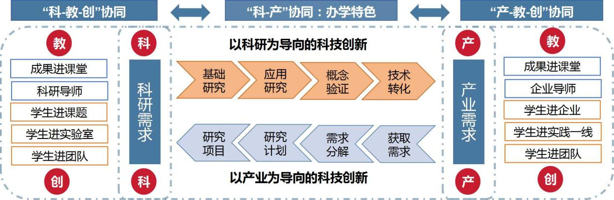 (引导学生进企业、进实践一线、进企业团队)、促进“科—创”深度融合(推进学生早进课题、进实验室、进团队),最终凝练形成“科-产”深度融合的特色办学方向,确保人才培养与产业全链条需求紧密衔接,形成“懂技术、会应用、能推广”的全产业链综合能力。