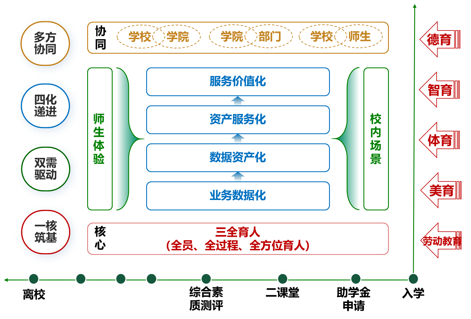 主要做法:以学生报到至毕业的全过程为主线,建立跨部门协同的数据治理体系,实现全过程育人目标。