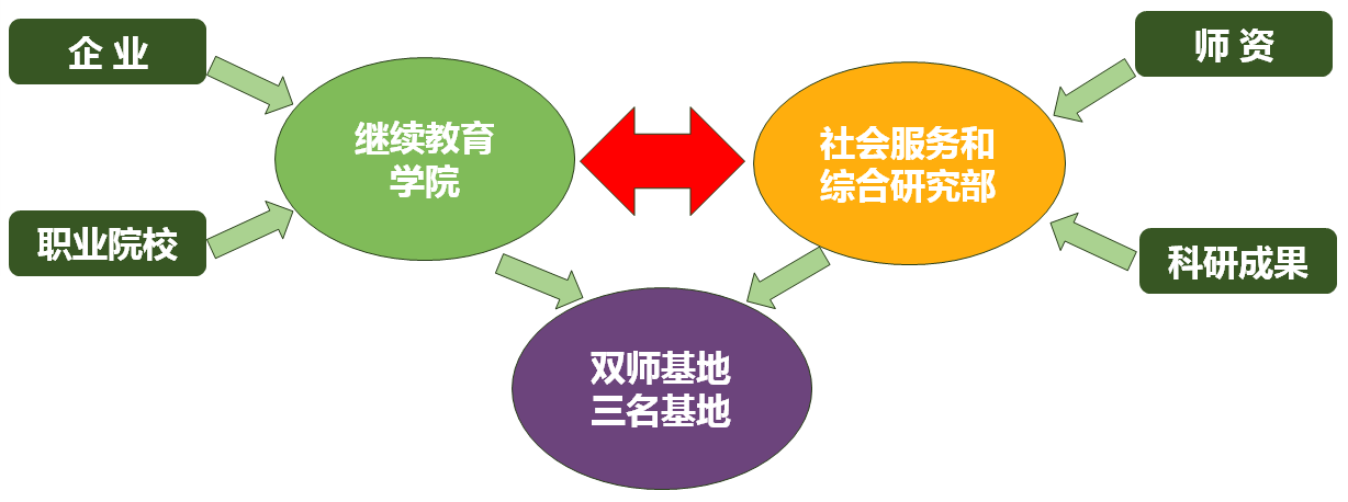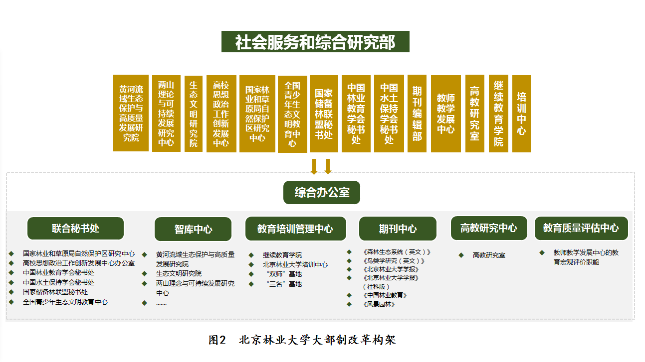 2021年初,北京林业大学成立社会服务和综合研究部,整合校内继续教育学院、林草发展研究院、学术期刊中心等12个教研与服务机构,联动中国林学会、国家林草局人才开发中心等6家行业组织,完成继续教育供给侧结构性改革,为“三融四链”模式提供组织保障。构建“政策研究—智库聚力—课程研发—产业应用—社会推广”的全流程服务体系,先后完成多项政策研究报告,为国家林草局提供决策支撑。