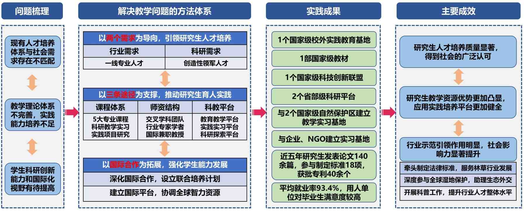 面对新时代生态文明建设、国际履约的重大需求与新形势下研究生培养面临的一系列挑战,该成果主要解决的教学问题如下: