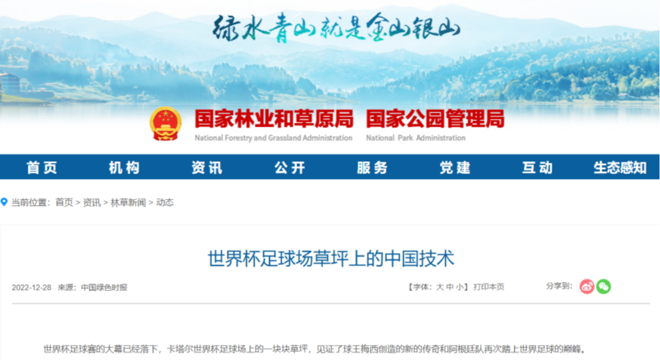 《中国绿色时报》报道《世界杯草坪上的中国技术》