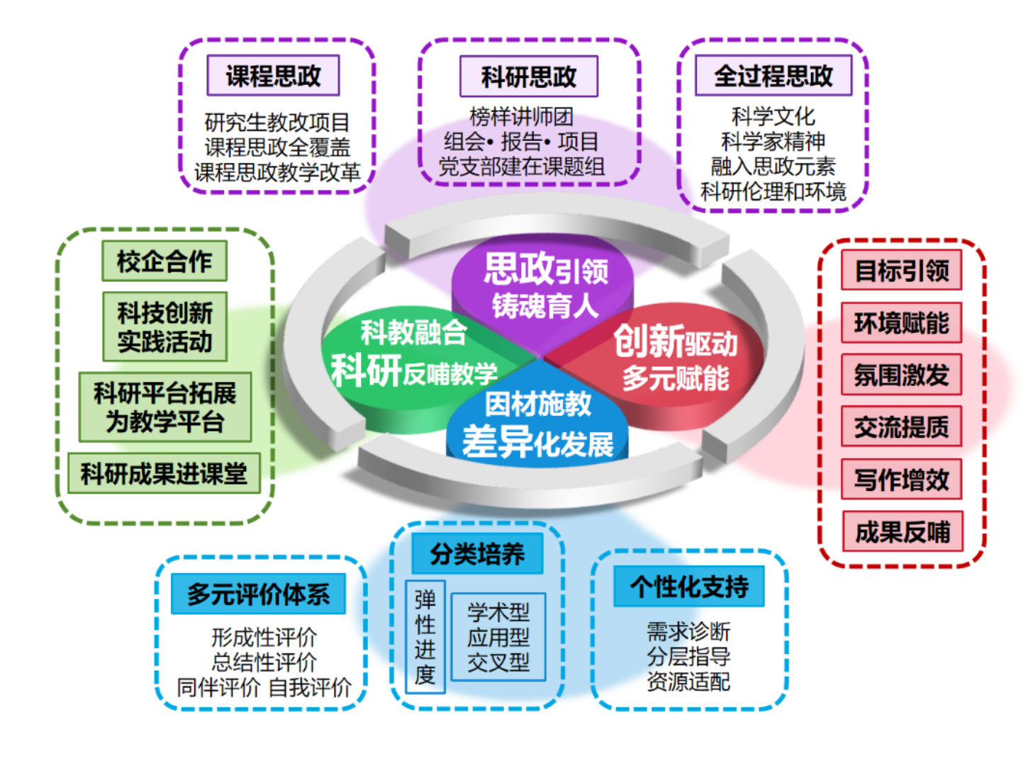 分类培养。实施“学术型-应用型-交叉型”分类指导策略,为学术型研究生配备学科领军导师深化前沿探索,实践型研究生对接企业导师开展技术攻关,复合型研究生组建跨学科团队进行交叉创新。