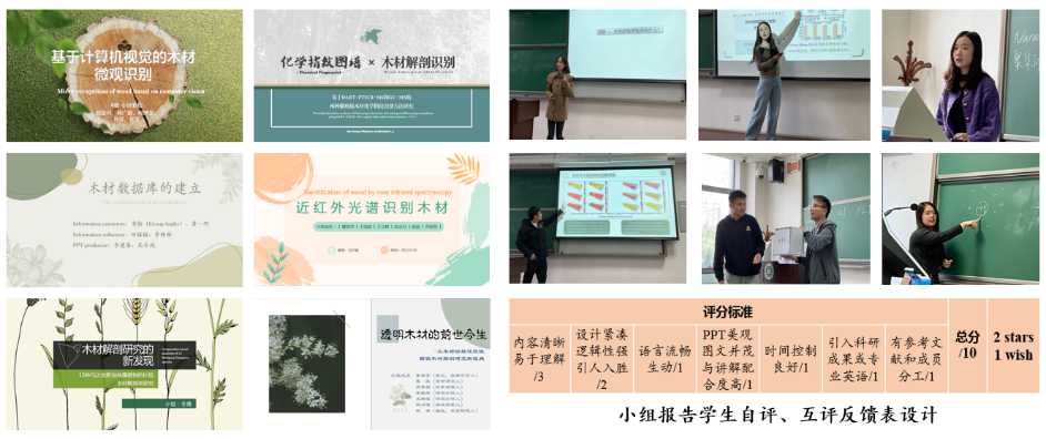 针对当下木材科学与技术的研究已不断深入到分子层面,并逐渐扩展至生物学、化学、物理学、材料学等多个领域,迭代经典教学内容,一方面融入木材细胞壁微纳结构的研究前沿,强化深度,学生建立多尺度构效关系;另一方面,增设跨学科进展专题(表1),拓展广度,构筑学生广阔视野与认知格局,通过深度和广度的升级对学生高阶化赋能,使国际前沿的敏锐度、科技创新的方向性成为人才培养的新质生产力。